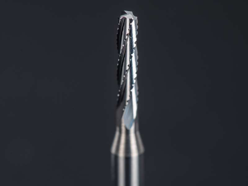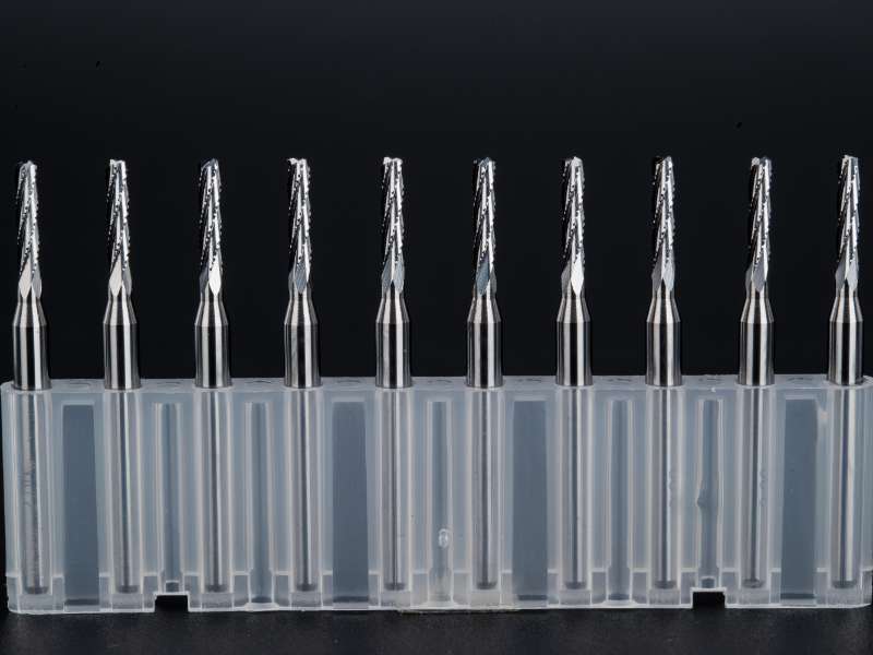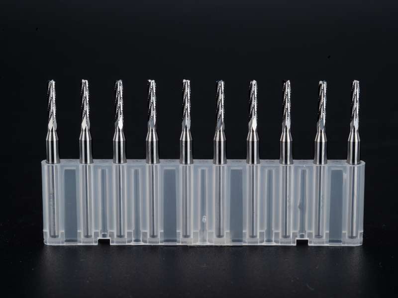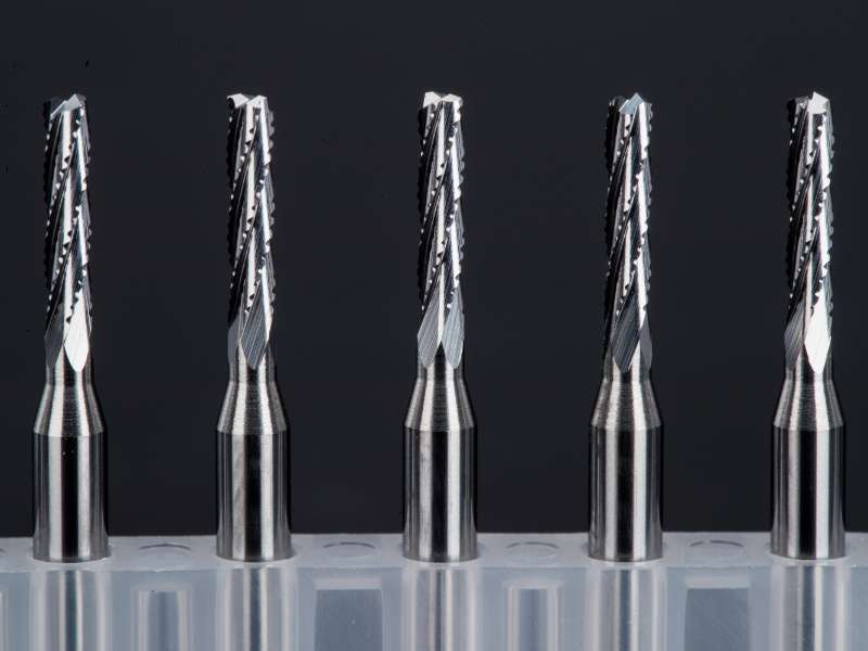 该款整体碳化钨硬质合金锣刀,刀柄直径为3.175mm,30°右旋断削齿设计,直径为0.80-2.40mm, 非常适合硬质和软质PCB材料,尤其适合用于High-TG和BT树脂,以及纤维材料