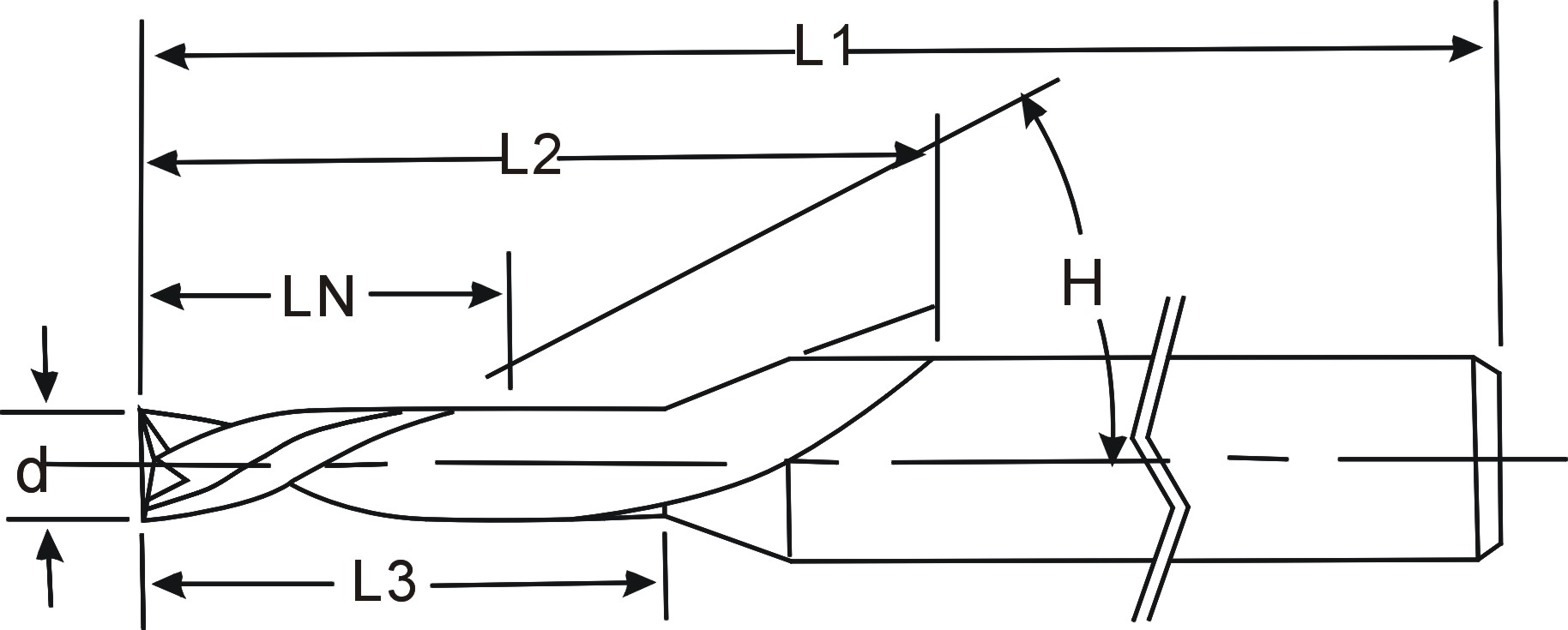 该款整体碳化钨硬质合金左旋两刃螺旋形锣刀,适用於顺时切削,刀柄直径为3.175mm, 刀刃直径范围为 0.60-2.40mm,特别适合柔性的PCB材料。